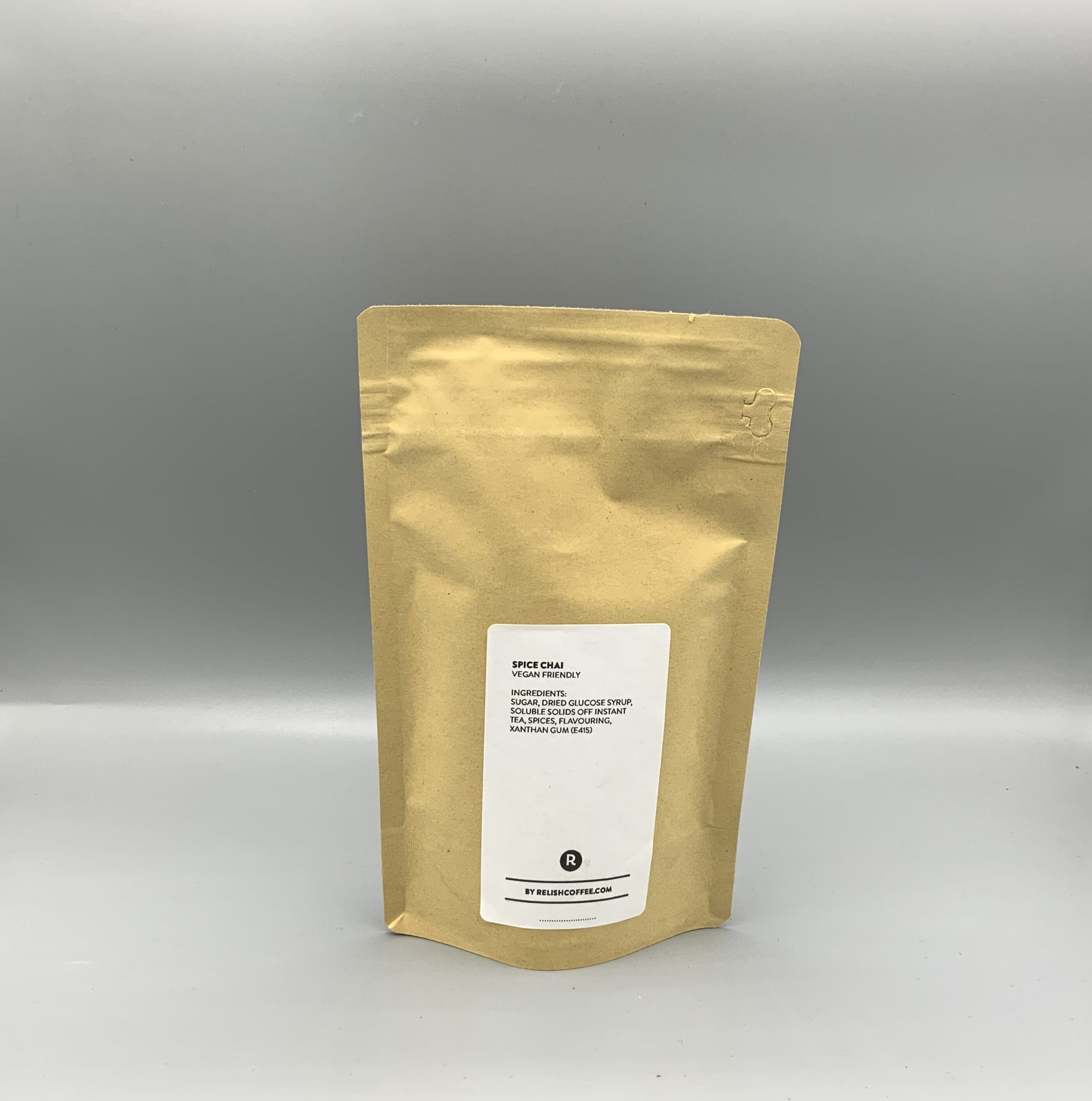 Ingredients: Sugar, Dried Glucose Syrup, Soluble Solids off instant tea, spices, Flavouring, Xanthan Gum (E415).